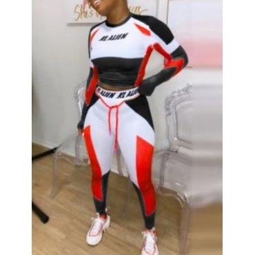 Lovely Sportswear O Neck Print Patchwork Red Two Piece Pants Set