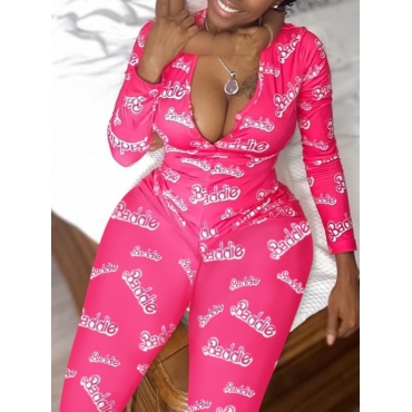 Lovely Stylish Letter Print Rose Red One-piece Jumpsuit(Batch Print)