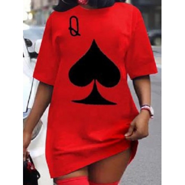 Lovely Leisure O Neck Print Rose Mini Plus Size Dress