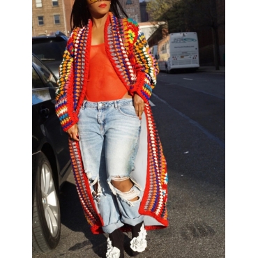 Lovely Bohemian Print Multicolor Long Plus Size Coat