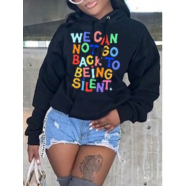 Lovely Leisure Hooded Collar Letter Print Black Hoodie