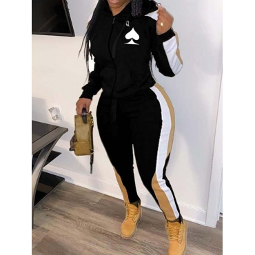 Lovely Leisure Hooded Collar Patchwork Black Plus Size Two-piece Pants Set