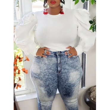 Lovely Trendy O Neck Patchwork White Plus Size Blouse