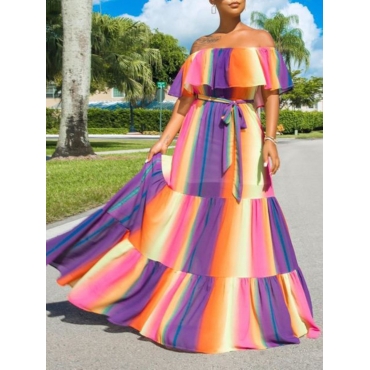 Lovely Bohemian Rainbow Striped Multicolor Maxi Dress
