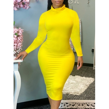Lovely Casual Basic Skinny Yellow Knee Length Plus Size Dress