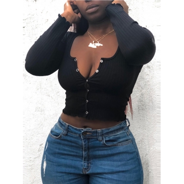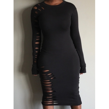 Lovely Sexy O Neck Broken Holes Black Knee Length Dress
