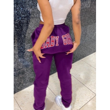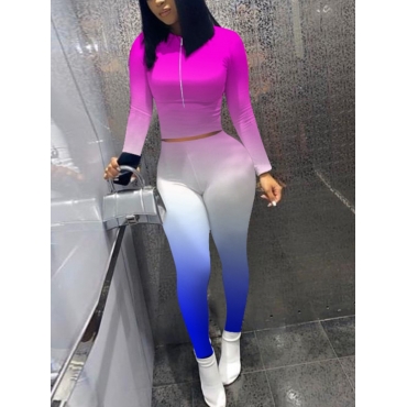 Lovely Trendy Gradient Zipper Design Purple Two Piece Pants Set