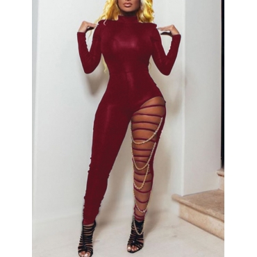 Lovely Sexy Hollow-out Skinny Wine Red One-piece Jumpsuit