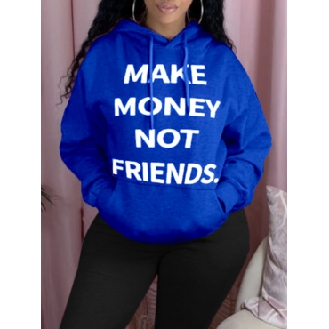Lovely Casual Hooded Collar Letter Print Blue Hoodie