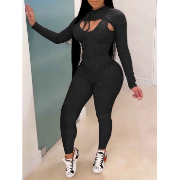 Lovely Sportswear Striped Black Two Piece Pants Set