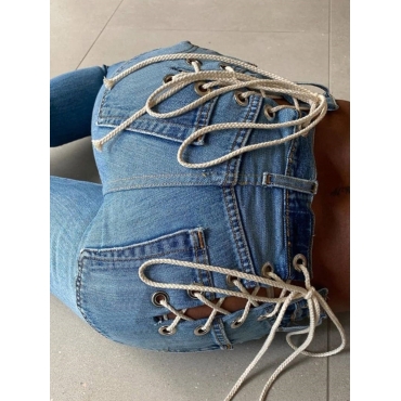 Lovely Trendy Bandage Design Baby Blue Jeans