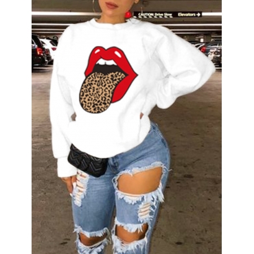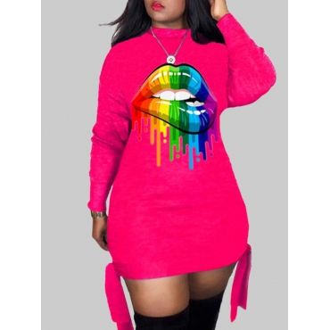Lovely Street O Neck Lip Print Rose Red Mini Plus Size Dress