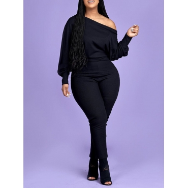 Lovely Leisure Basic Skinny Black Plus Size One-piece Jumpsuit