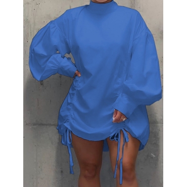 Lovely Casual Half A Turtleneck Fold Design Blue Mini Plus Size Dress