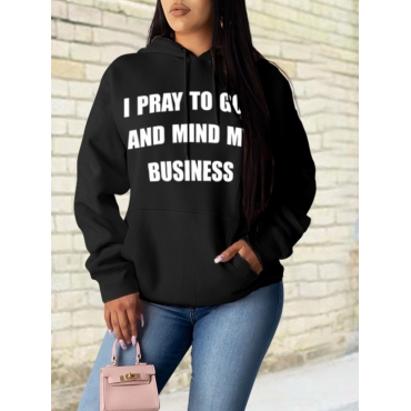 Lovely Casual Hooded Collar Letter Print Black Hoodie