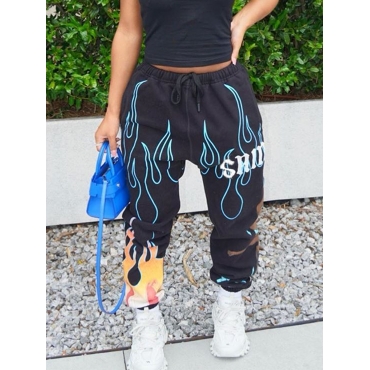 Lovely Leisure O Neck Gradient Black Two Piece Pants Set