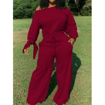 Lovely Leisure Drawstring Loose Wine Red One-piece Jumpsuit
