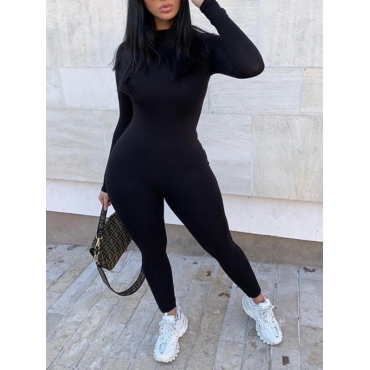 Lovely Sportswear O Neck Basic Skinny Black One-piece Jumpsuit