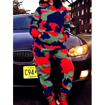Lovely Sportswear Camo Print Loose Red Plus Size Two-piece Pants Set