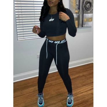 Lovely Sportswear O Neck Letter Print Black Two Piece Pants Set