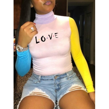 Lovely Trendy Turtleneck Letter Patchwork White Plus Size T-shirt