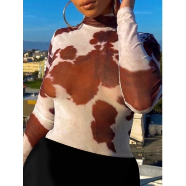 Lovely Casual Turtleneck Print Cow Grain Plus Size T-shirt
