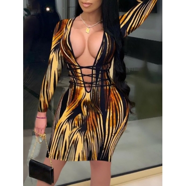 Lovely Sexy Deep V Neck Print Bandage Design Black Mini Dress(Batch Print)