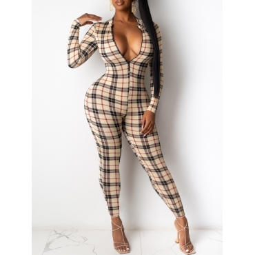 Lovely Trendy Grid Print Skinny Black And White One-piece Jumpsuit