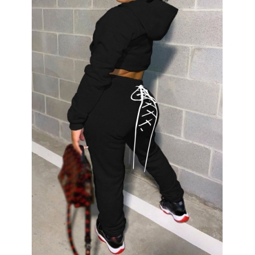 Lovely Sportswear Hooded Collar Bandage Design Black Two Piece Pants Set