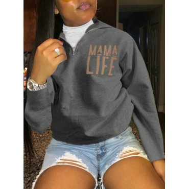 Lovely Casual Letter Print Zipper Design Grey Hoodie