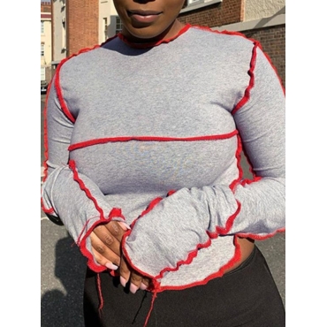 Lovely Street O Neck Patchwork Grey Plus Size Hoodie