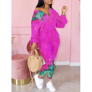 Lovely Trendy Tie-dye Skinny Purple One-piece Jumpsuit