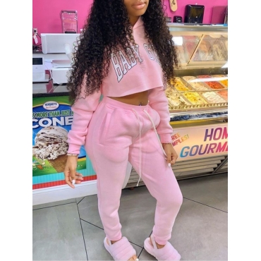 Lovely Casual Hooded Collar Letter Print Pink Two Piece Pants Set