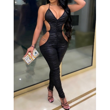 Lovely Sexy Backless Fold Design Black One-piece Jumpsuit