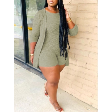 Lovely Casual O Neck Basic Green Plus Size Two-piece Shorts Set