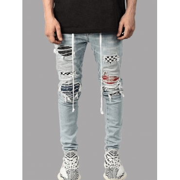 Lovely Street Broken Holes Baby Blue Men Jeans