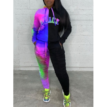 Lovely Street Hooded Collar Tie-dye Patchwork Blue Plus Size Two-piece Pants Set