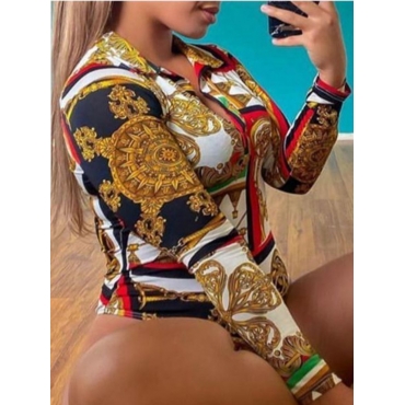 Lovely BohoTurndown Collar Print Patchwork Multicolor Plus Size Bodysuit