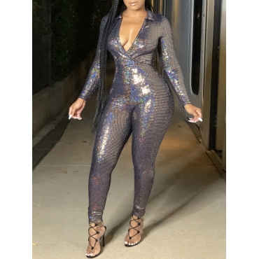 Lovely Stylish Deep V Neck Skinny Silver One-piece Jumpsuit