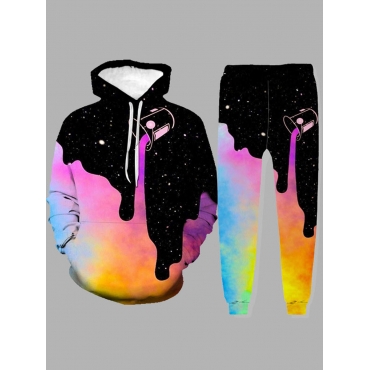 Lovely Street Hooded Collar Starry Sky Print Multicolor Men Two-piece Pants Set