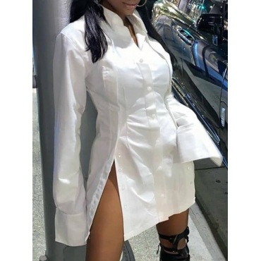 Lovely Stylish Turndown Collar Side High Slit White Mini Dress