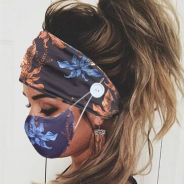 Lovely Plants Print Deep Blue Face Mask(With Headband)