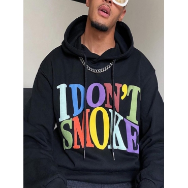 Lovely Casual Hooded Collar Letter Print Black Men Hoodie