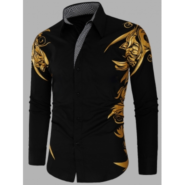 Lovely Stylish Turndown Collar Print Black Men Shirt