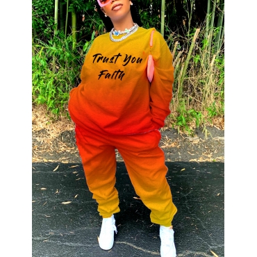 Lovely Street O Neck Letter Print Croci Plus Size Two-piece Pants Set