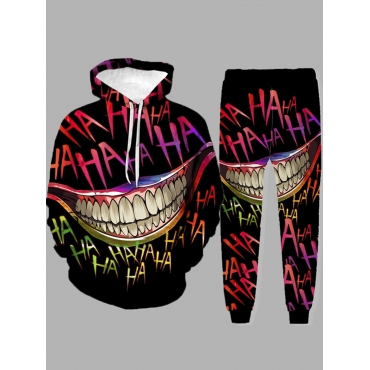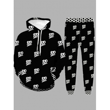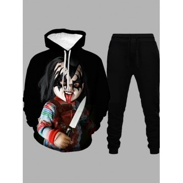 Lovely Street Hooded Collar Print Black Men Two-piece Pants Set