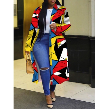 Lovely Trendy Turndown Collar Print Multicolor Long Plus Size Trench Coat