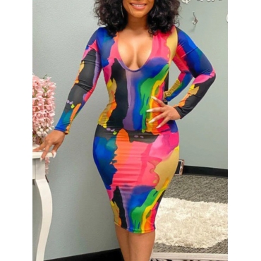 Lovely Trendy V Neck Tie-dye Multicolor Knee Length Dress