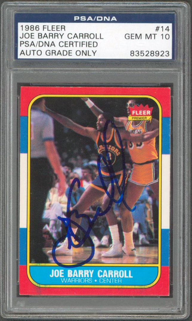 Warriors Joe Barry Carroll Signed 1986 Fleer #14 Card Auto 10 PSA Slab #83528923