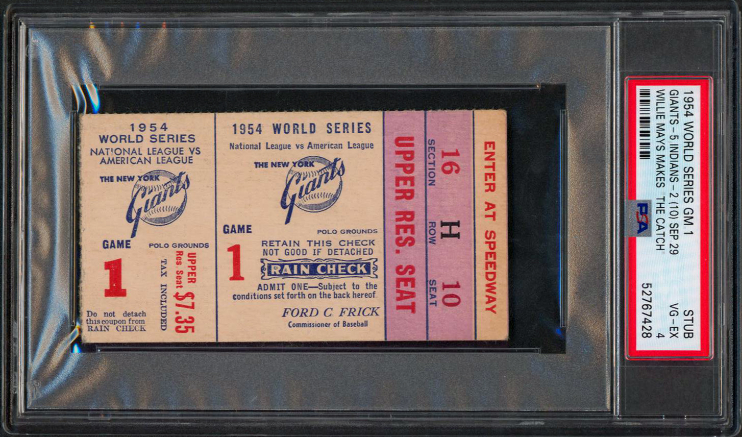 1954 World Series Game 1 Willie Mays "The Catch" Ticket Graded VG-EX 4 PSA Slab